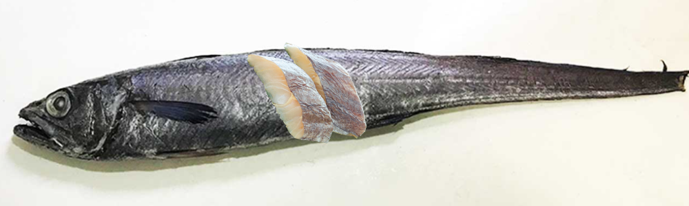 切り身の幅=ホキの体高(約6~10cm 背中〜お腹の厚み)を表しており、写真のように細長い体でも、切り身はしっかり厚みがあるのが特徴。